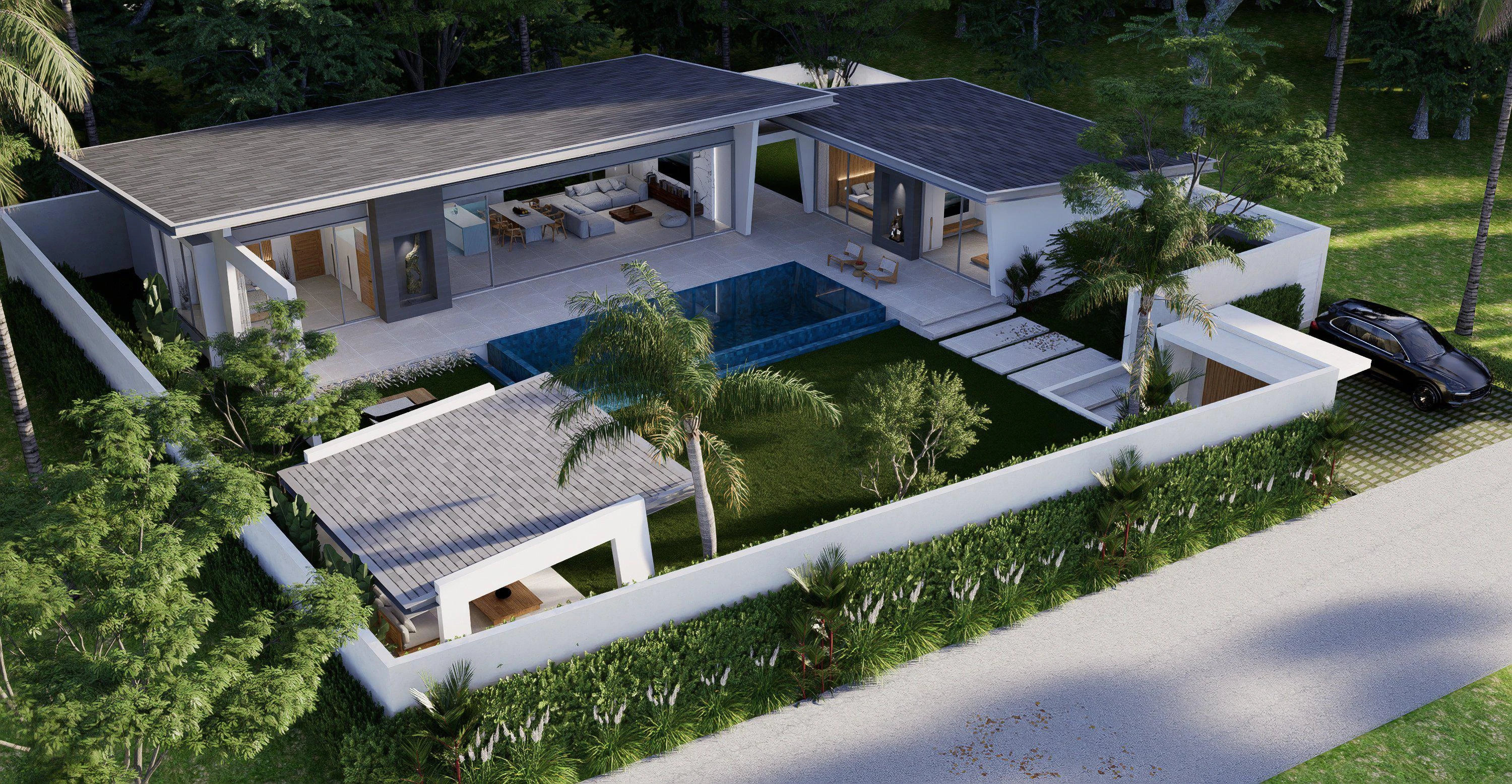 У каждой виллы есть 3 спальни, 4 ванны, большая гостиная/столовая/кухня открытой планировки, полностью оборудованная кухня, большой частный бассейн-инфинити, терраса, вентиляторы и кондиционеры во всех комнатах, просторная открытая зона отдыха в главном саду, колодец с водой, большой частный ландшафтный сад, частная крытая парковка на 2 машины.